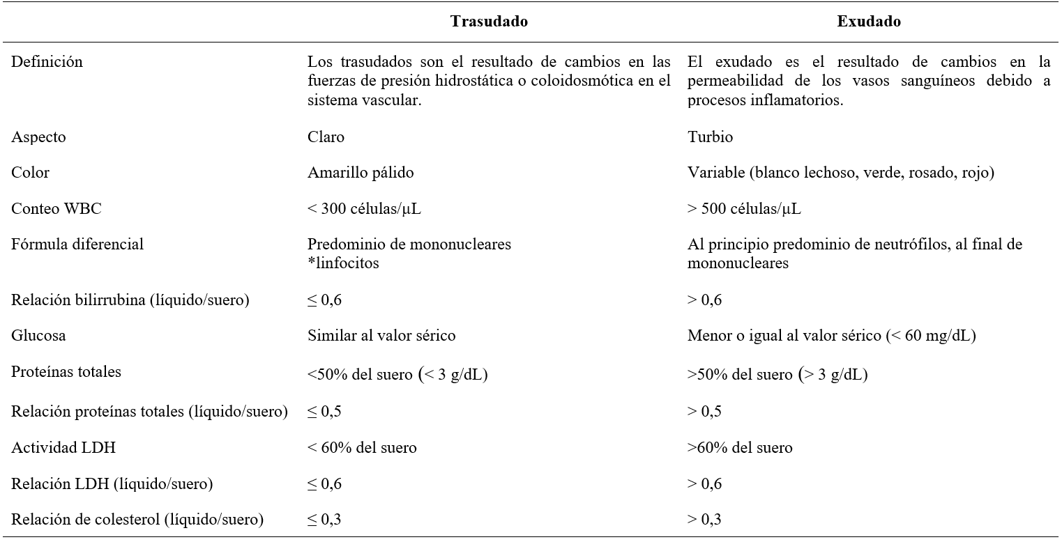 - Concentración de albúmina en líquido: el cálculo del gradiente de albúmina sero-ascítico o GASA (concentración de albúmina en suero menos la concentración en el líquido), permite diferenciar entre exudado y trasudado. Un GASA ≥ 1,1 sugiere la presencia de un trasudado, mientras que un GASA < 1,1 probablemente sea un exudado.
